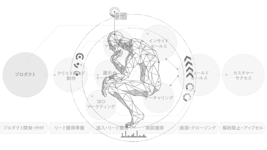 顧客のPMFを達成するために、BtoBビジネスの全領域を一気通貫でサポート。