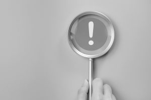 Attention,Caution,Warning,Concept.,Magnifying,Glass,Focus,On,Red,Page